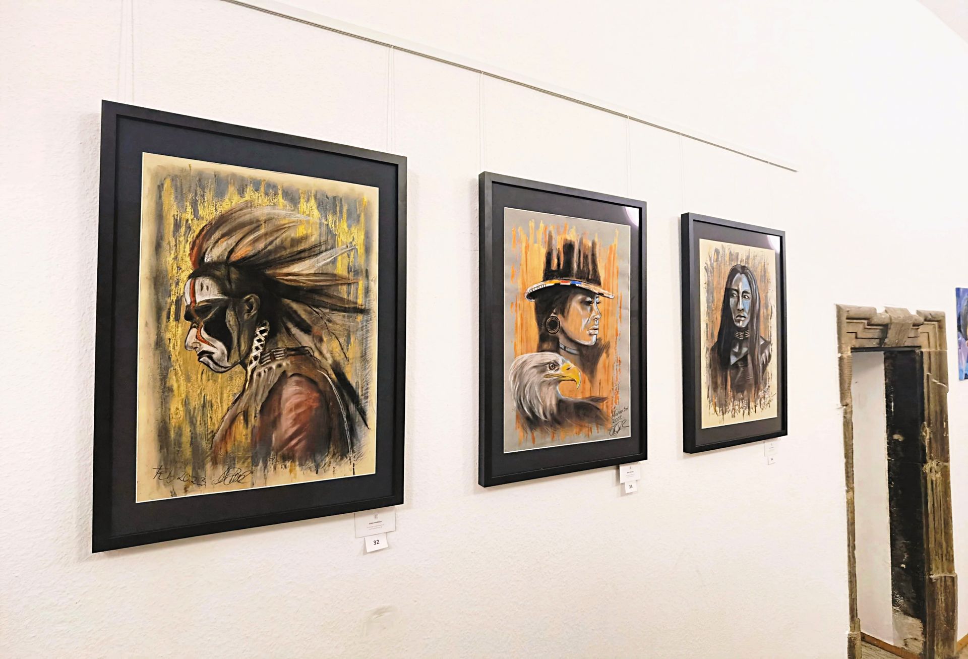 Mixed-Media Kriegerporträts über Stärke, Würde und innere Kraft.