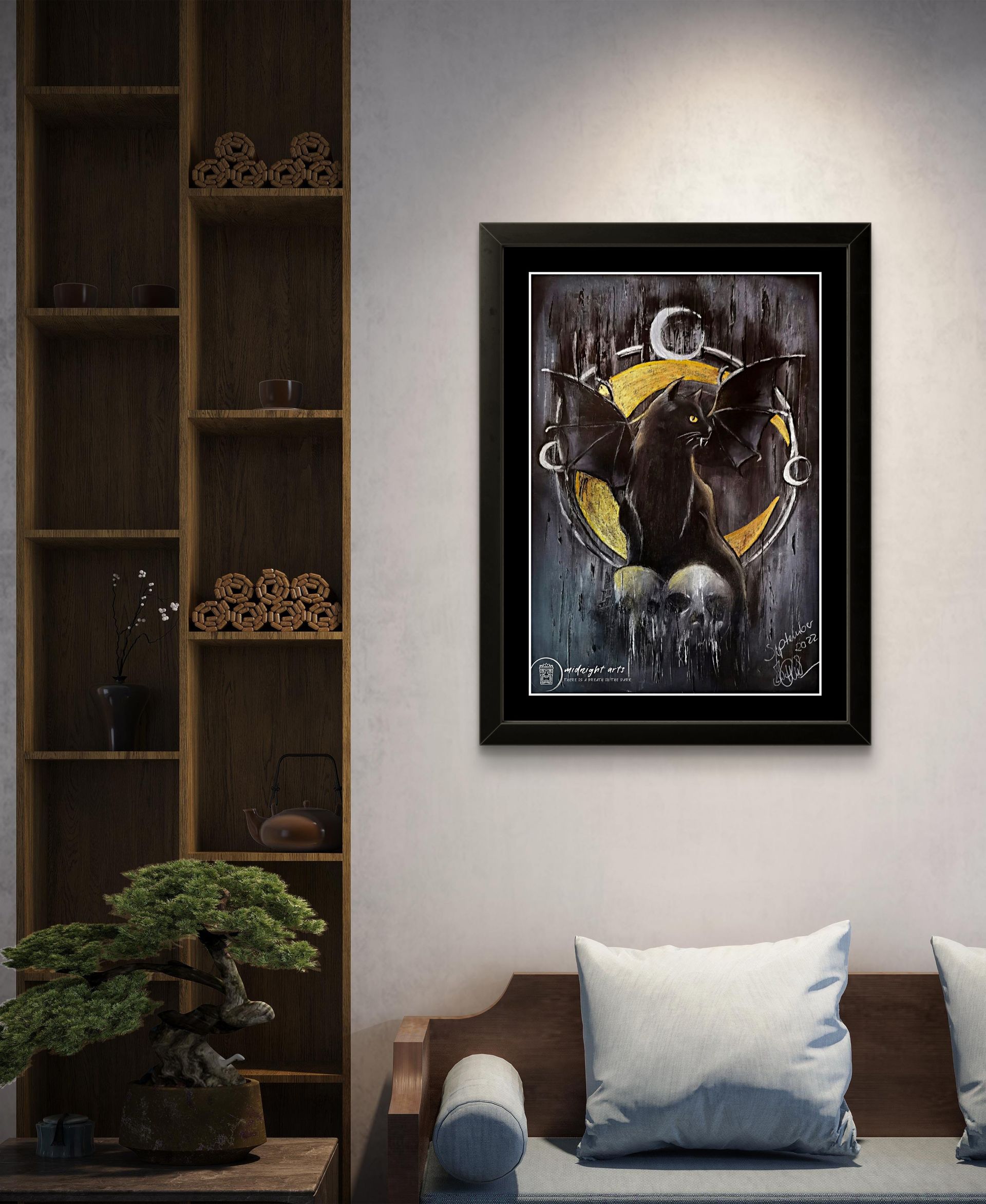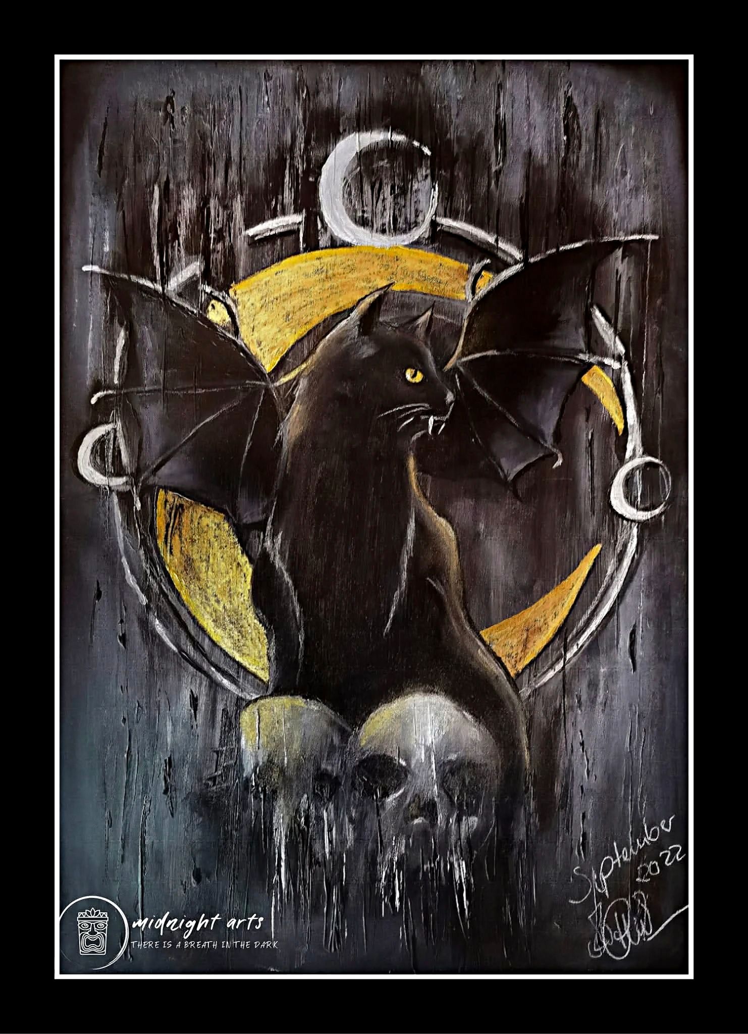Hinweis:Durch die verwendete Metallic-Layer-Technik, kann sich die Farbwirkung je nach Licht und Betrachtungswinkel verändern. Alle Werke entstehen auf grundiertem Künstlerpapier. Je nach Technik, werden Fixative zur Stabilisierung und Haftung der Materialien verwendet.