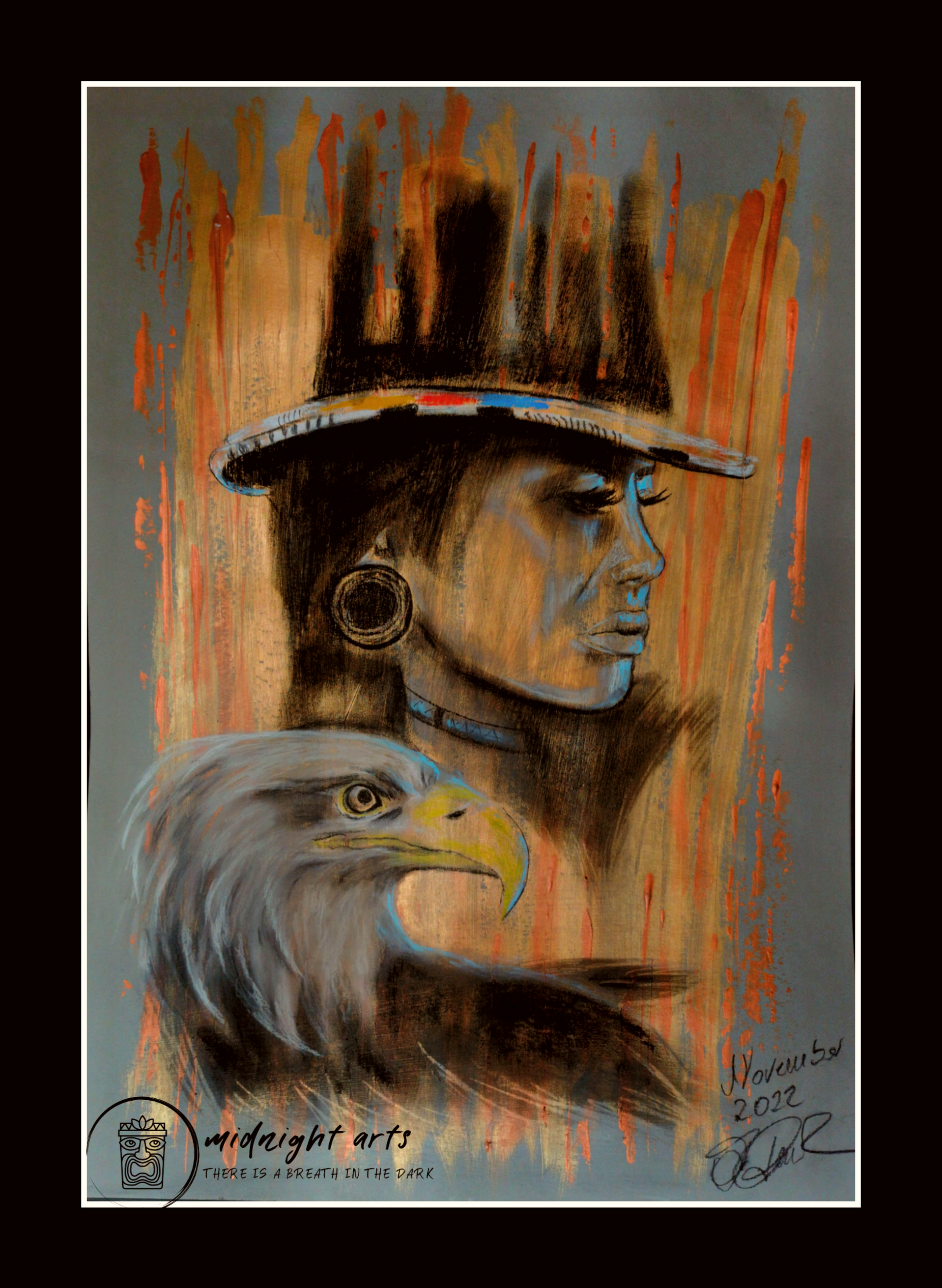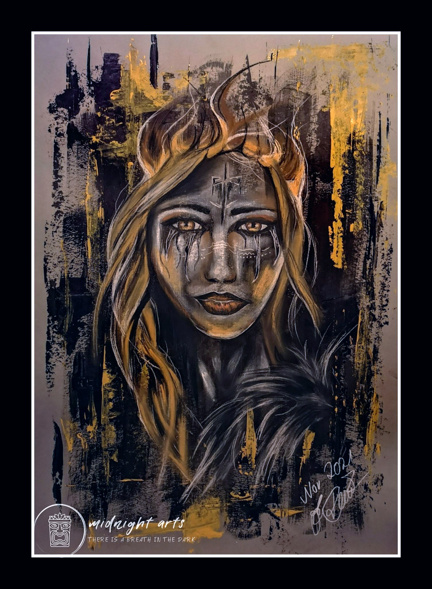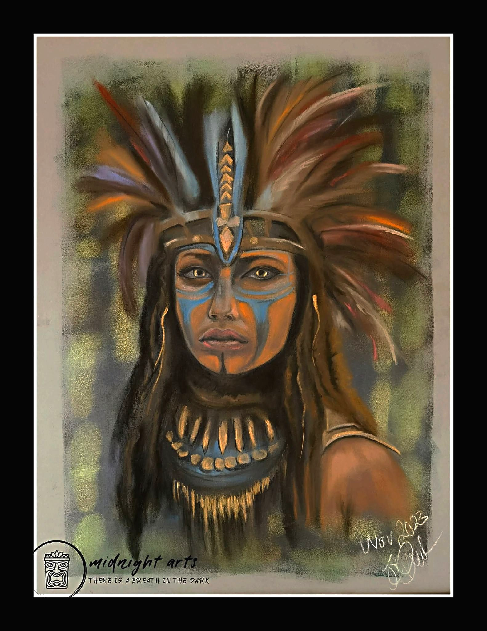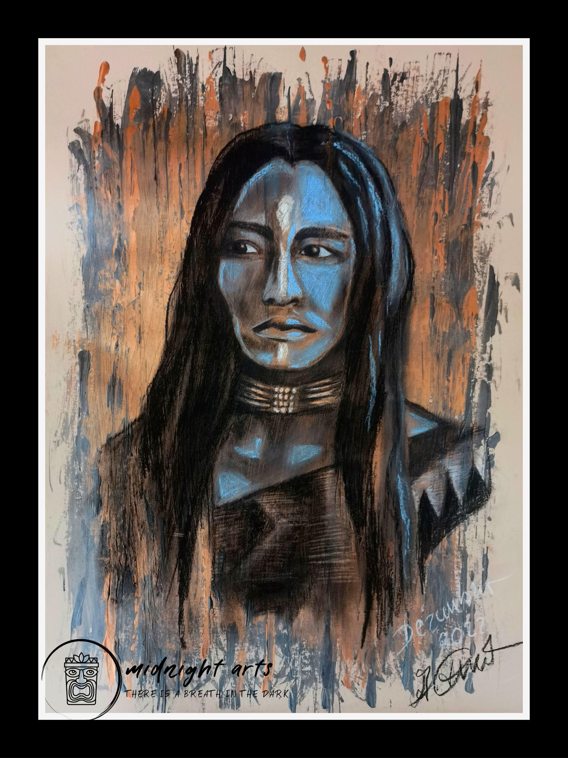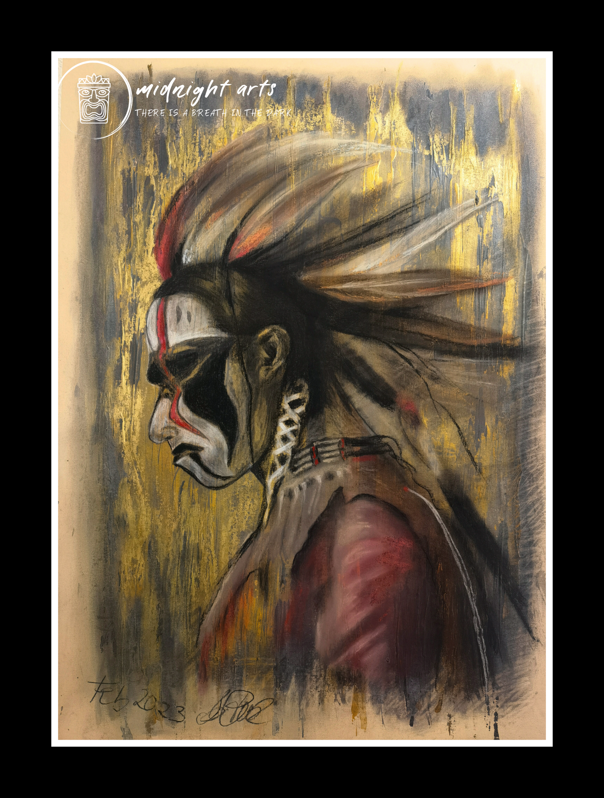 Mixed-Media warrior portraits exploring strength, dignity, and inner resilience.