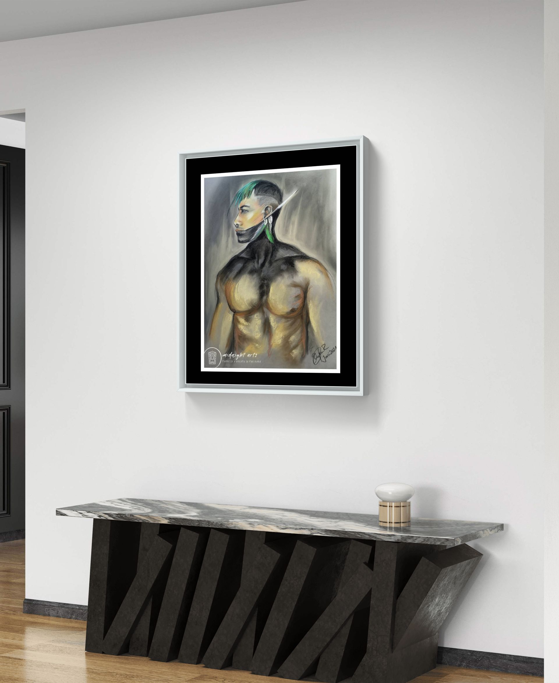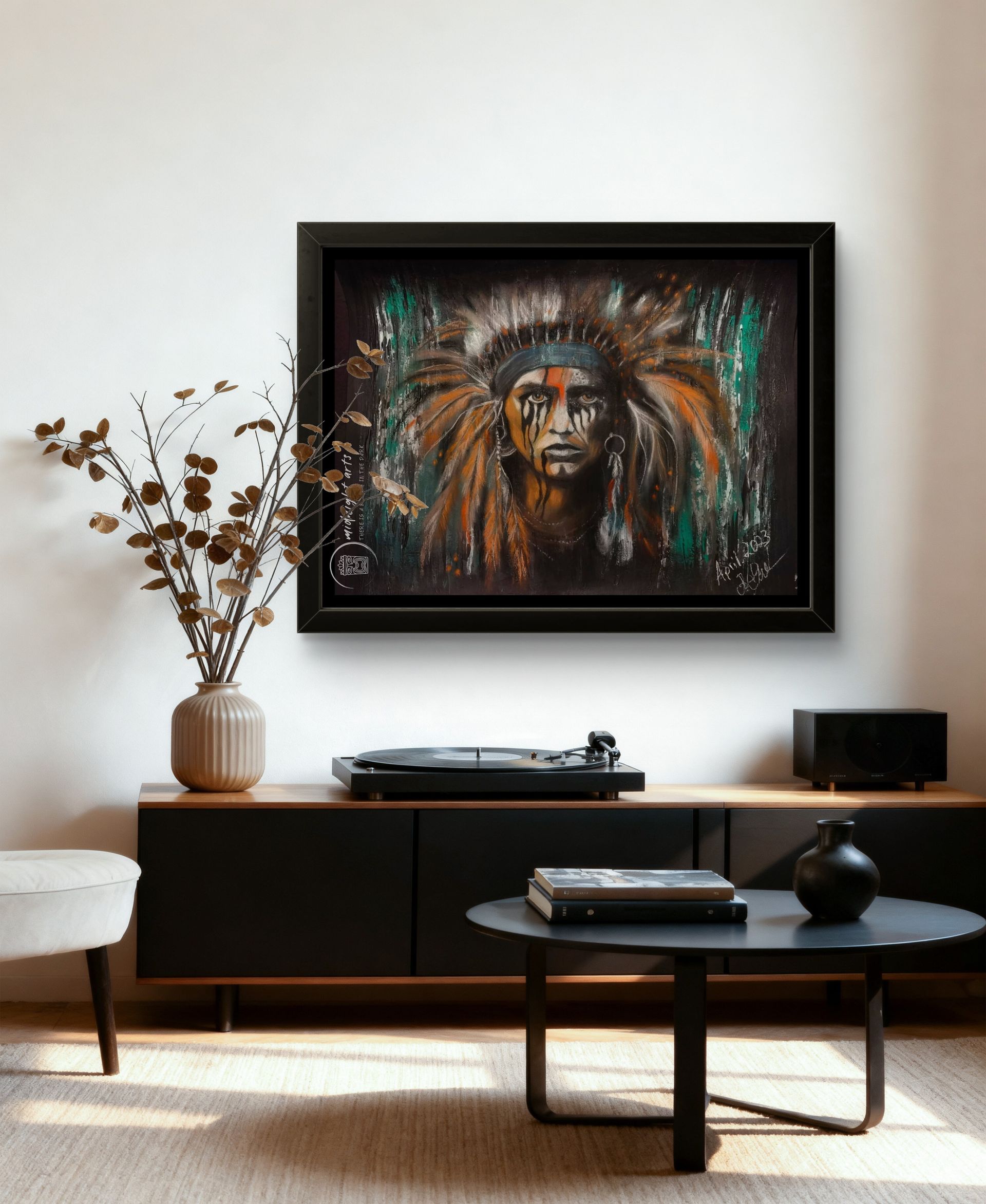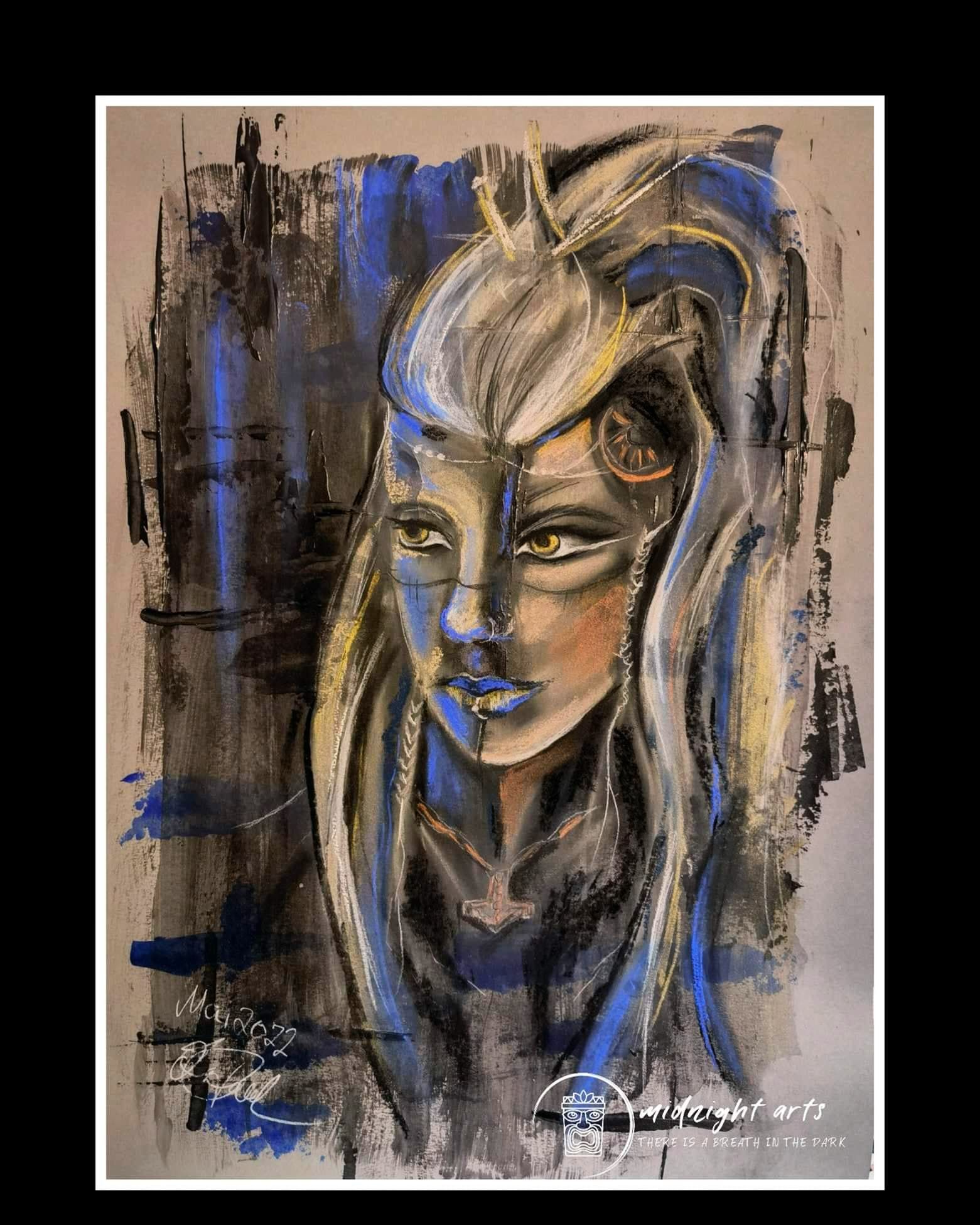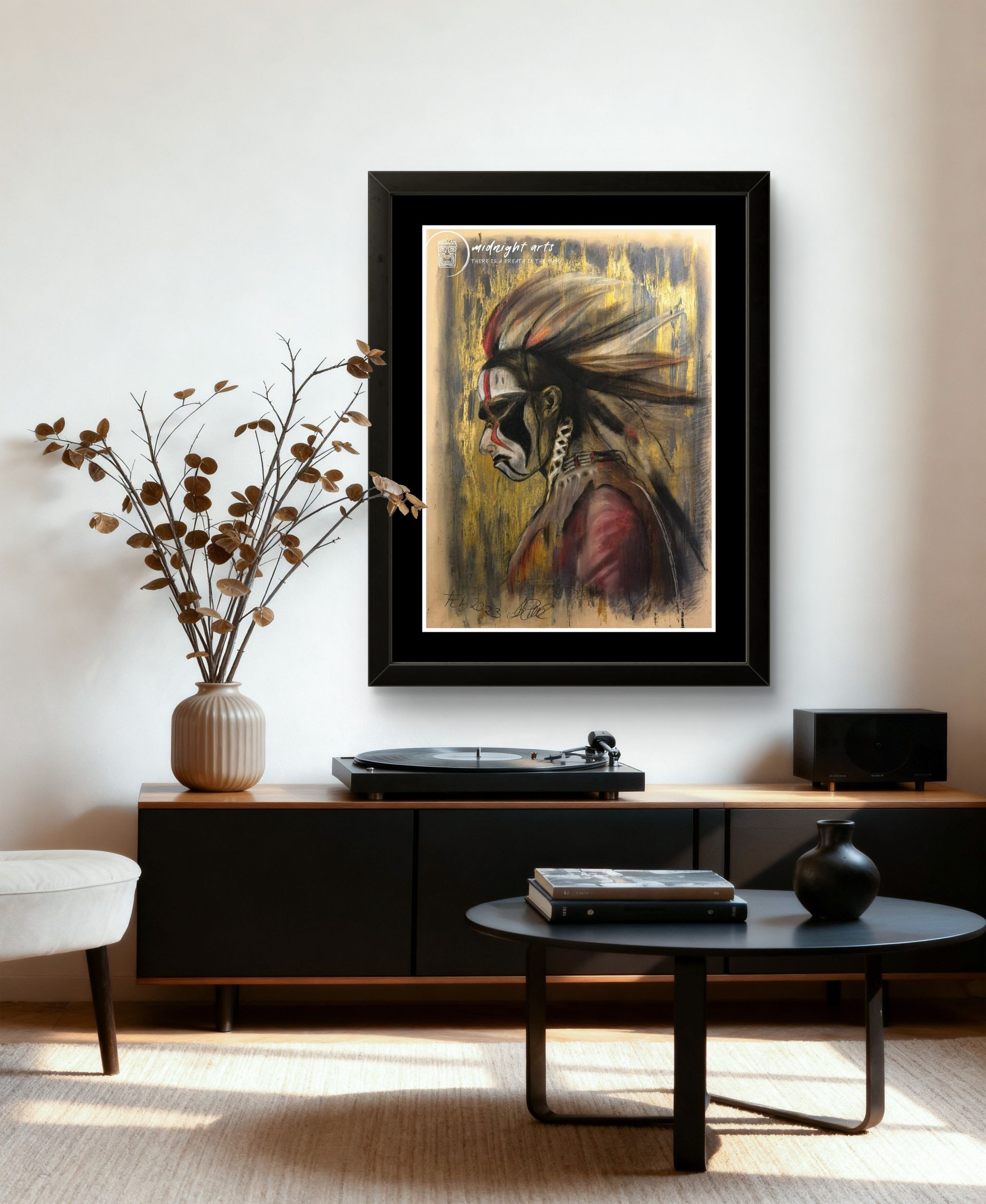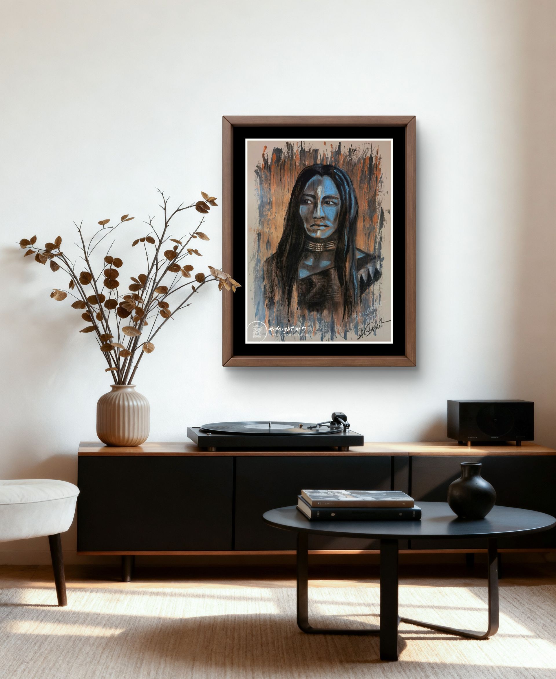 Mixed-Media warrior portraits exploring strength, dignity, and inner resilience.