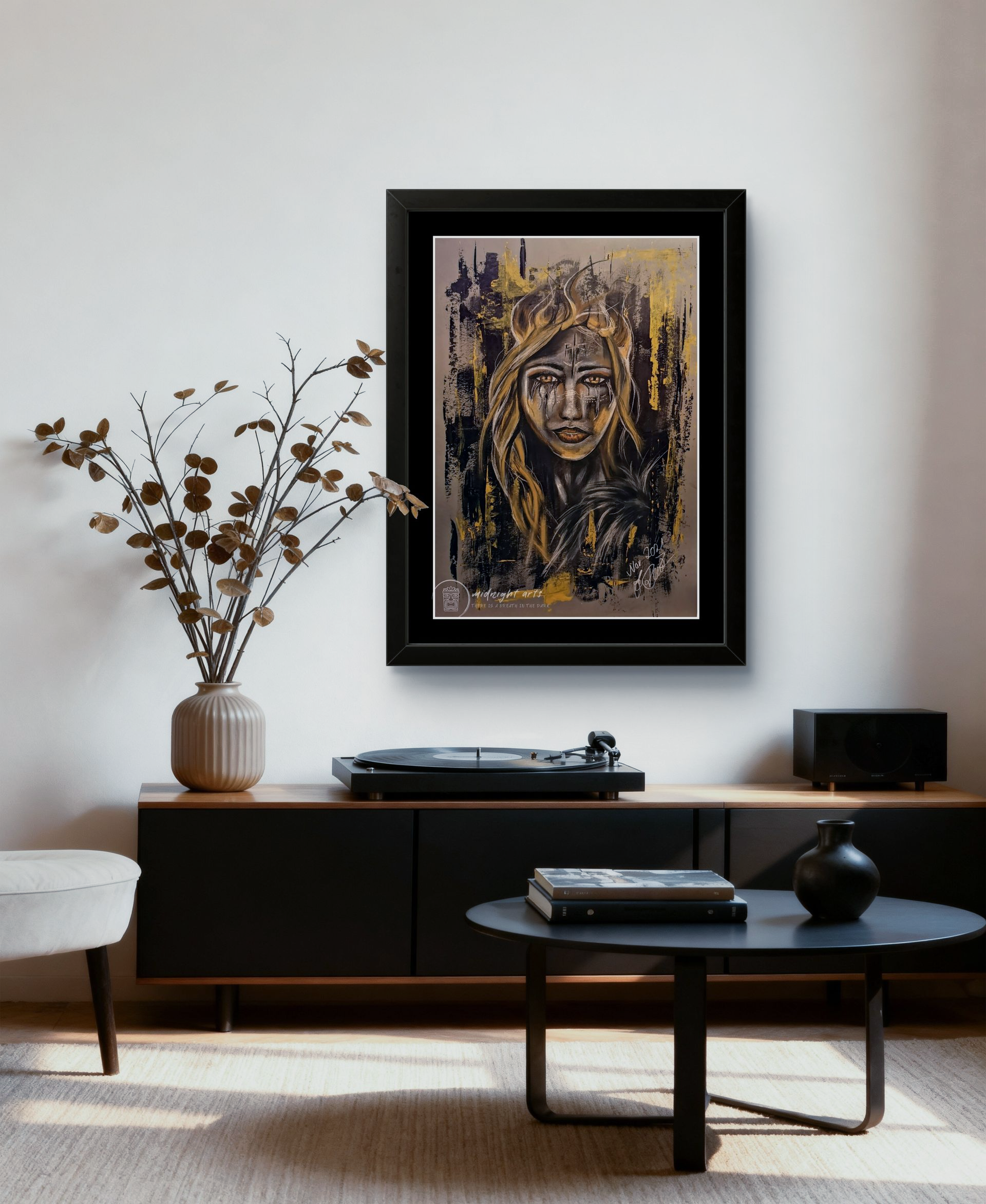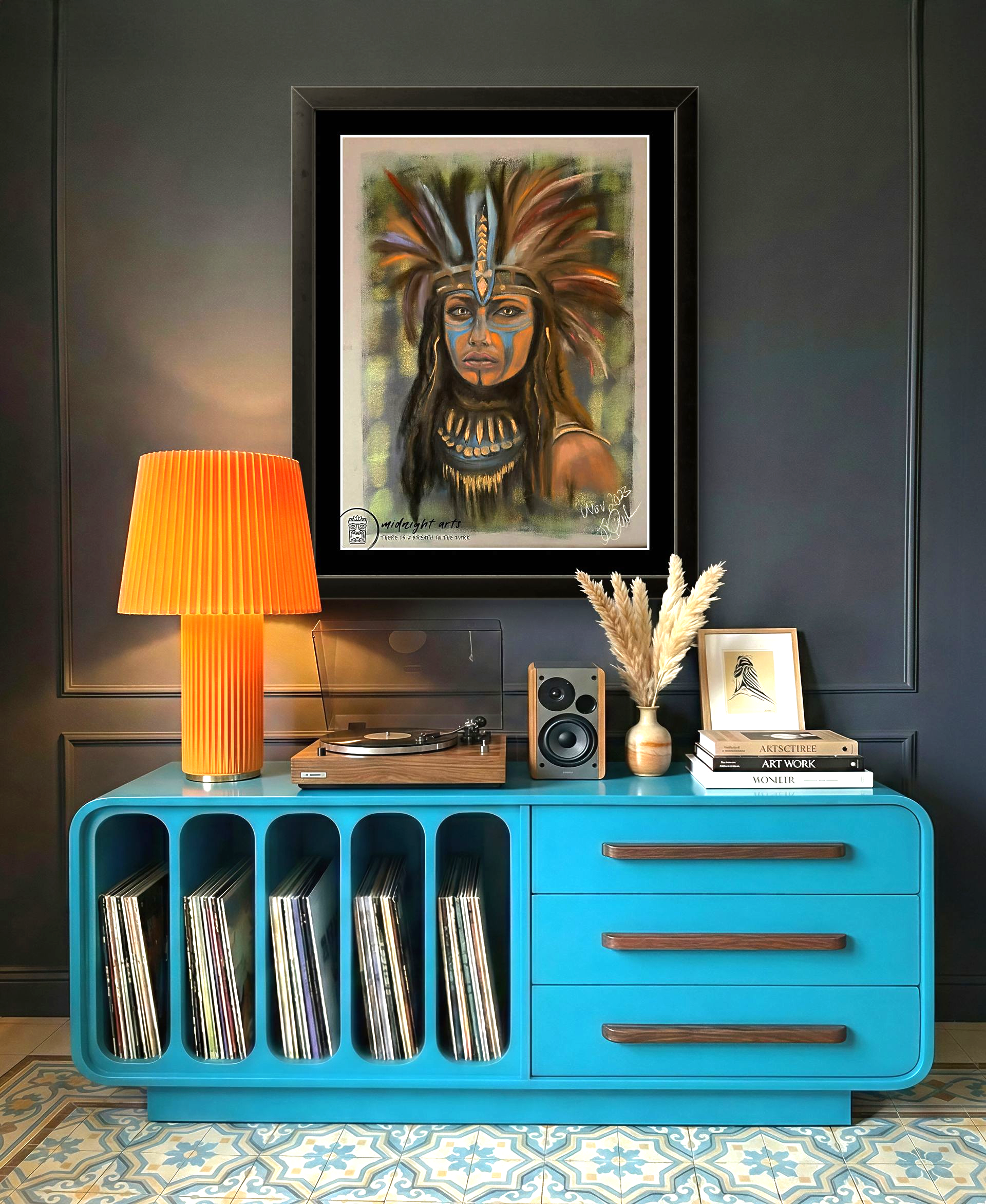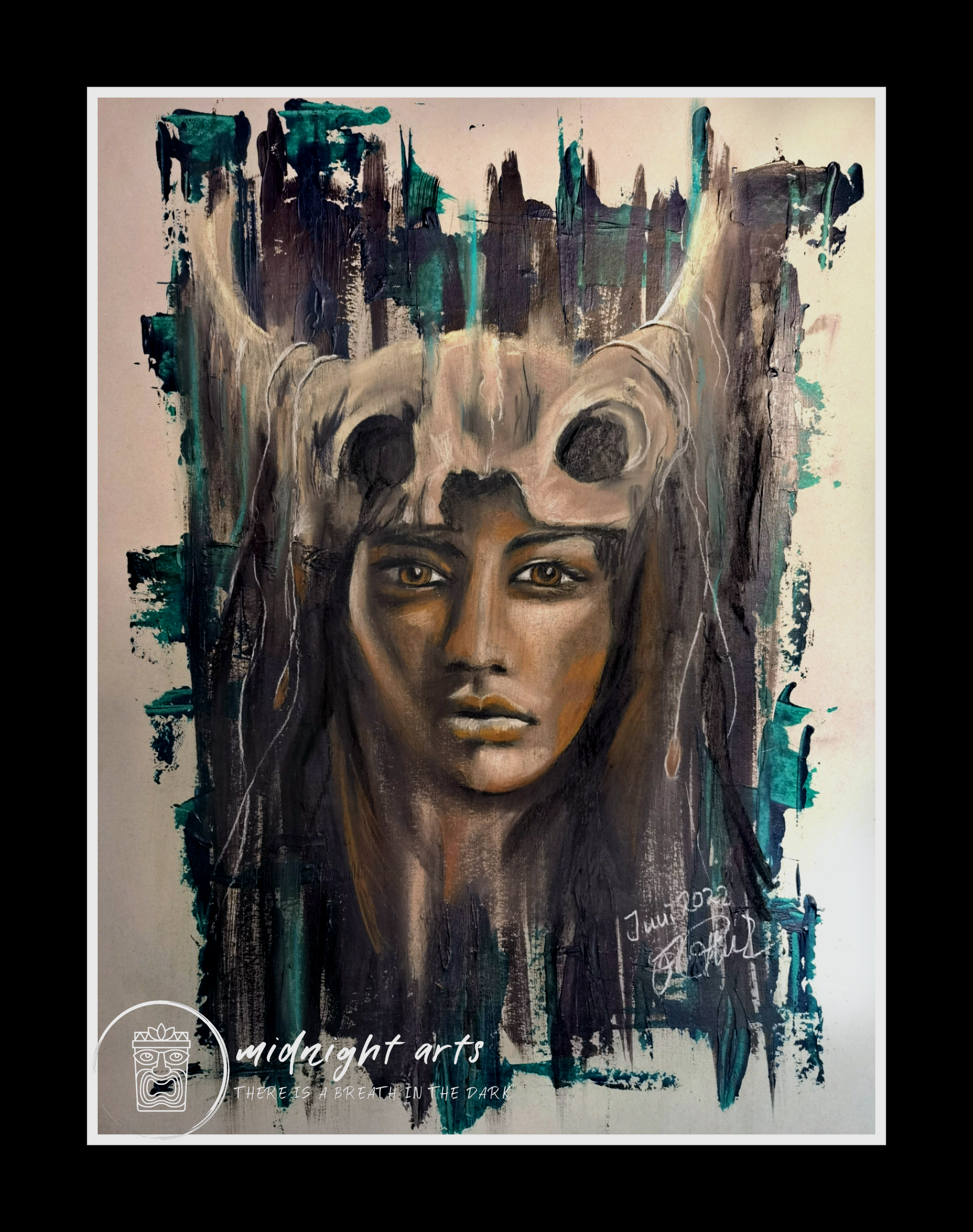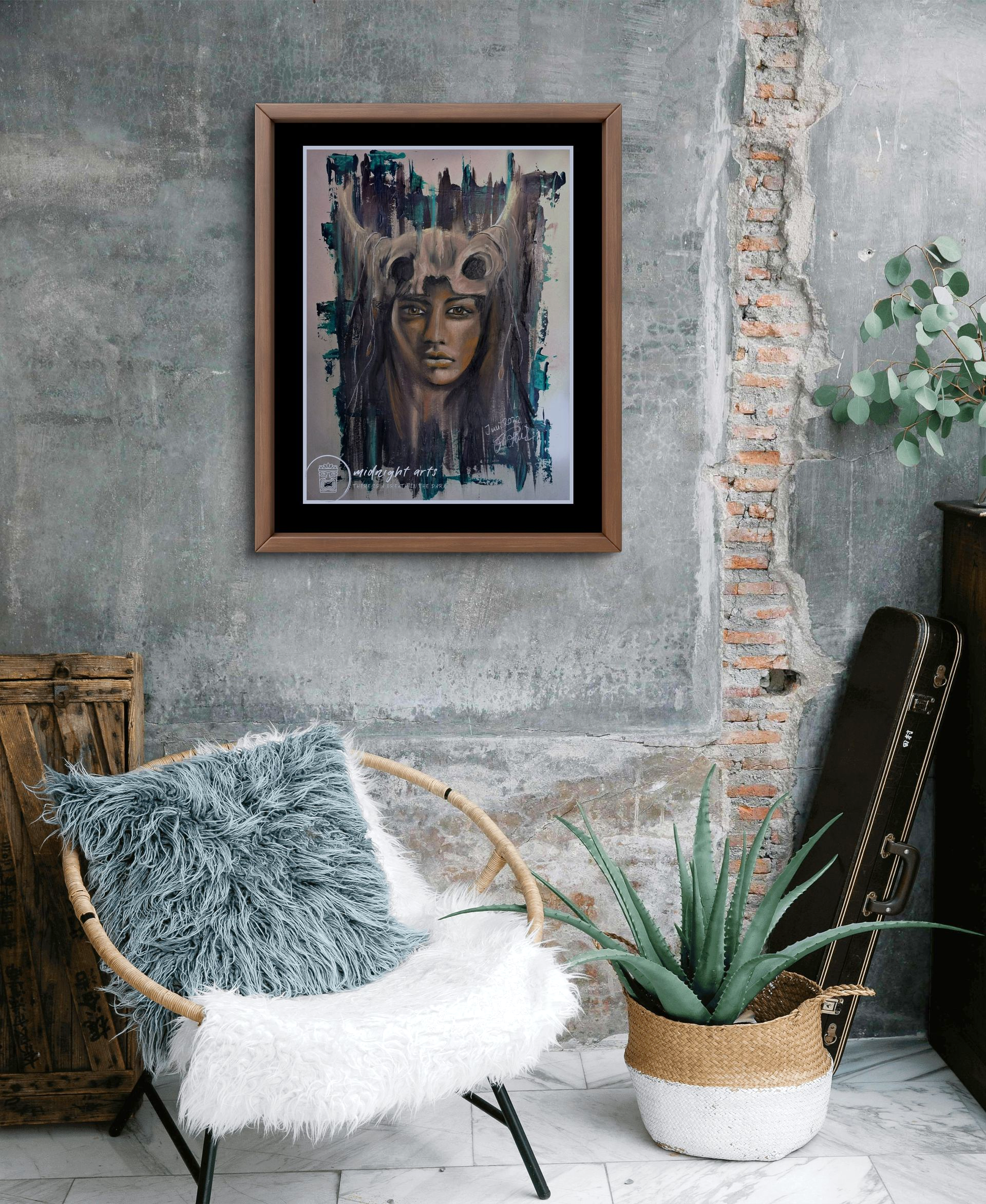 Mixed-Media Warriorporträts über Stärke, Würde und innere Kraft.